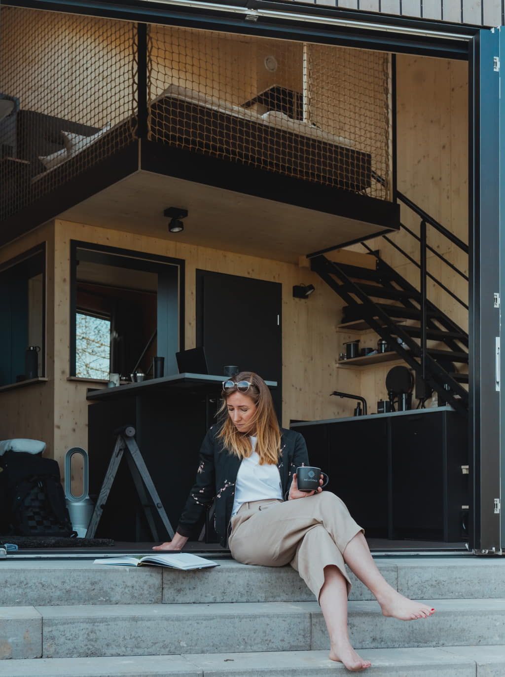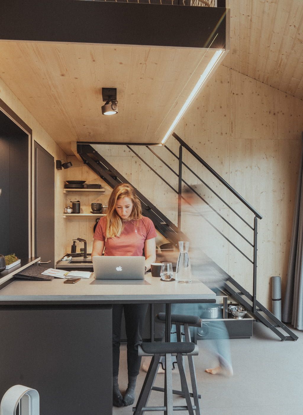 A staircase takes you up to the cosy sleeping loft, where more natural spectacles await you thanks to the large skylight: Cloud or stargazing from your bed.