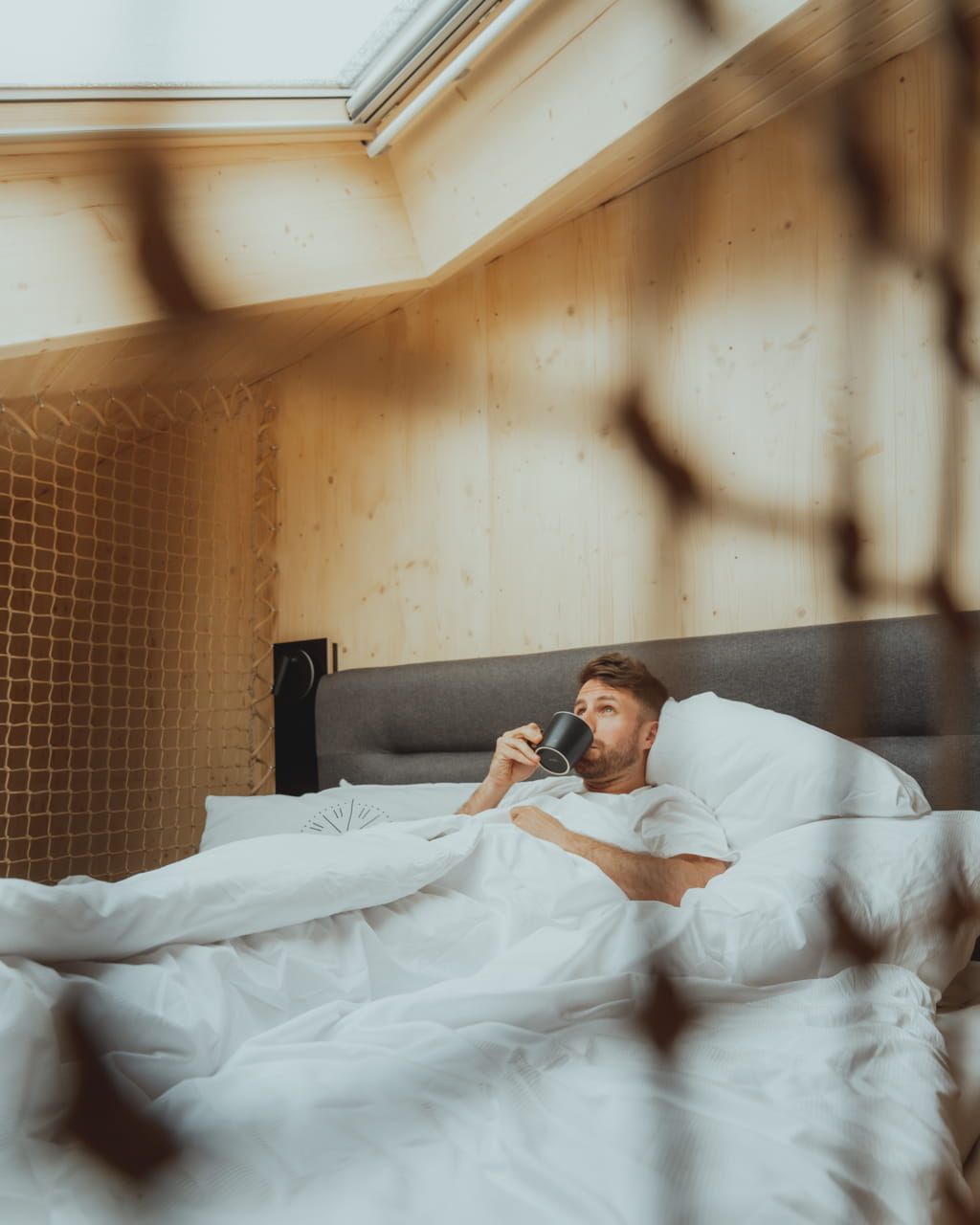 For our star lovers, we built these two solitary Tiny Houses (30sqm) at the beginning of 2023 – with a special kind of flatscreen: a six-metre-long panoramic window and a skylight above the bed. If you’ve forgotten about everyday life because of all the natural spectacles and want to check whether the rest of the world still exists, just to be on the safe side: Internet and TV are available via the hotel’s own WiFi and Ipad.