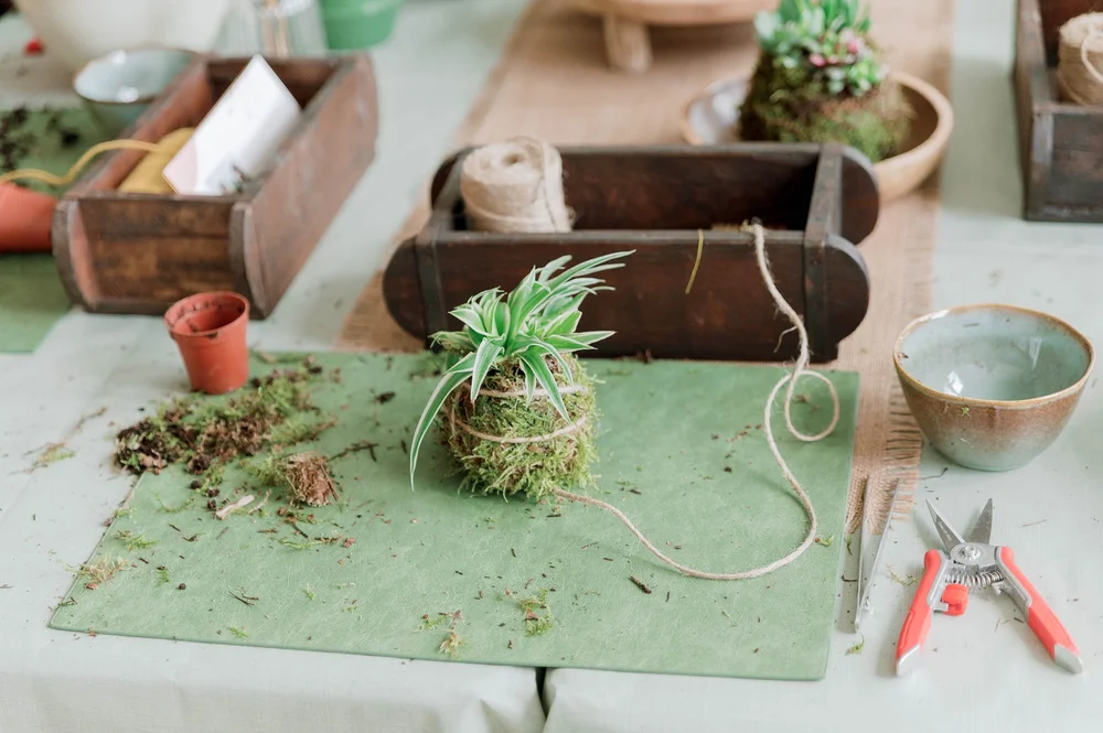 Les Kokedamas sont originaires du Japon. Ces boules de mousse faites main sont plantées de plantes d’intérieur et sont composées de matériaux entièrement naturels.